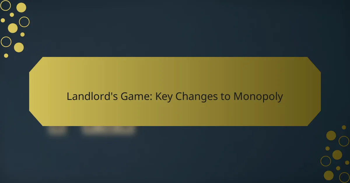 The Landlord’s Game introduces several significant changes to Monopoly, enhancing gameplay and player engagement. Key modifications include updated mechanics, new property types, and revised interactions among players, all aimed at creating a more dynamic experience.